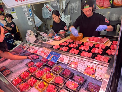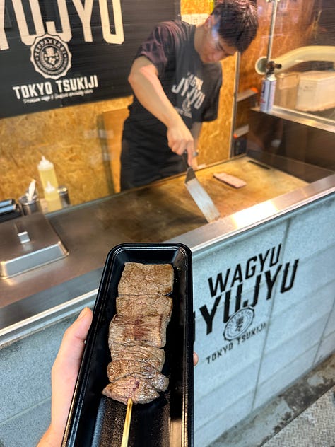 Day 4 was for eating and resting. I’d walked about 30,000 steps back to back days, and I realized that if I didn’t take a beat every few days of doing so, these three months were going to kill me. But to feel productive I woke up early and hit the famous Tsukigi market.