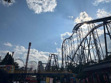 The following day I hit Lake Kawaguchi in hopes of seeing Mount Fuji. Unfortunately it was too cloudy, but the lake town was stunning, and I decided to take a hike in the mountains just to get lost in nature a bit. I had hoto for lunch. Hoto is a specific style of ramen only made in the Yamanashi prefecture, using a pumpkin base. My lord, was it tasty. Truly I might have to do another post just re-capping the food in this country, but somehow that would be even longer than this one!! With three hours till my train back to Tokyo, and no Fuji in sight, I decided to hit Fuji-Q Highland, an amusement park world famous for its record breaking rollercoasters. If you’re a fan of coasters, it’s a must do. But again, get the fast pass because I ended up waiting 90 minutes in line for Fujiyama (the “king of coasters” as it’s known) before realizing that was an option. Still, it was one of the best coasters I’ve ever ridden so worth it.
