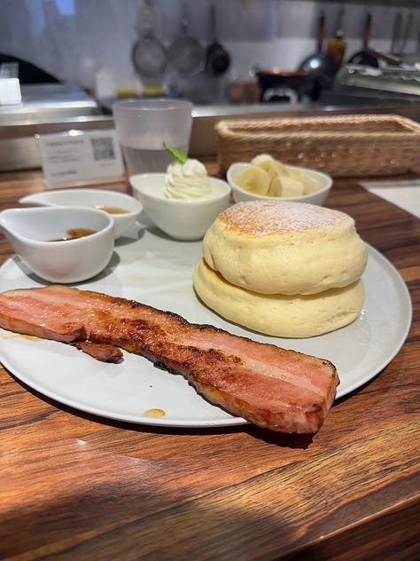 I’m being informed I’m nearing the limit of what I can write (Substack doesn’t know who it’s dealing with) so I’ll keep the final day short. I got the fluffiest pancakes at Cafe Hanon, went to Meiji Shrine/gardens, got carbonara ramen at Menchirashi, and ended with the aforementioned hangout with the locals!